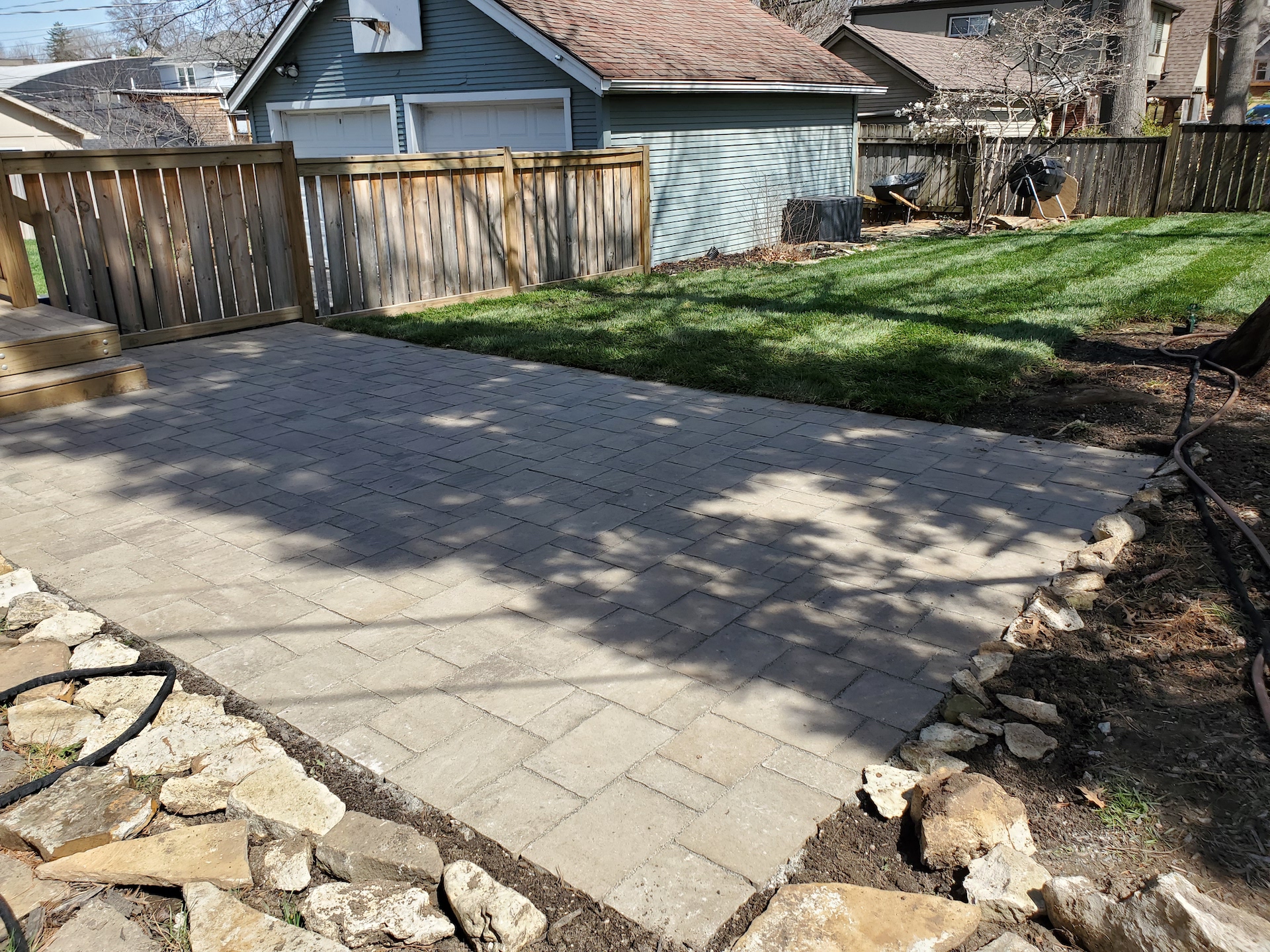 Fresh, new sod and interlocking paver patio.
